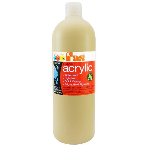 Fas Beige Student Acrylic Paint is a non-toxic, fast drying and versatile acrylic paint suitable for home and school use. The paint has vibrant pigments for intense colour and can be mixed together easily. Compatible with a variety of painting mediums such as Gesso, Texture Paste, Impasto Gel and more. Suitable for use with paper, card, canvas, wood, fabric, plastic and more. Easy soap and water clean up.