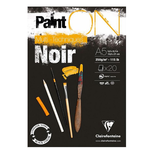 Clairefontaine PaintON Pad Black A5 250gsm 20 Sheet