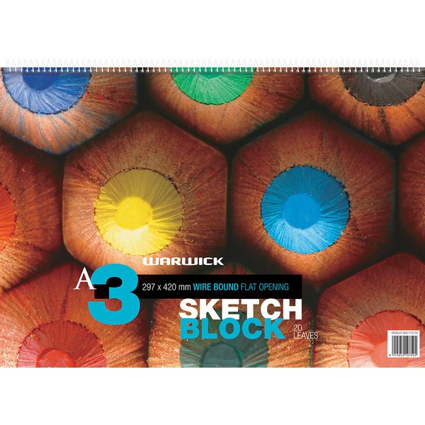 Use this A3 Warwick Sketch Block to draw and sketch using pens, pencils, charcoal, pastels and other drawing mediums. Spiral bound for extra strength and allows for flat opening. The pad contains 20 leaves of 120gsm making this a great choice for artists and students.