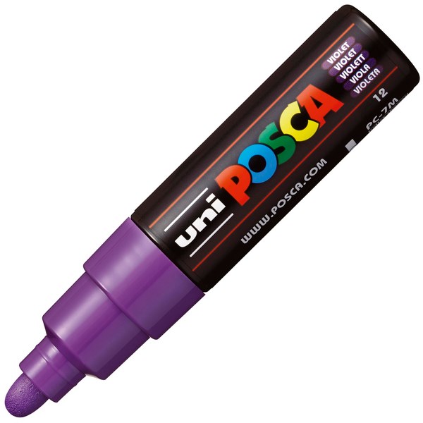 Get creative with this violet Uni Posca paint marker that is perfect for use on non-porous surfaces. The violet ink is made from opaque, water-based acrylic paint. It is non-toxic, light-fast, Xylene-free, lead-free and acid-free making it a safe option for all. You don't have to worry about any strong chemical smell as this marker is odorless. Once the ink is dried the ink becomes waterproof and only comes off if you rub at it. The 4.5mm bullet tip is ideal for where big and bold lines are required. Suitable for sealed surfaces like glass, car bodies, and most chalkboards with an ammonia-based cleaner