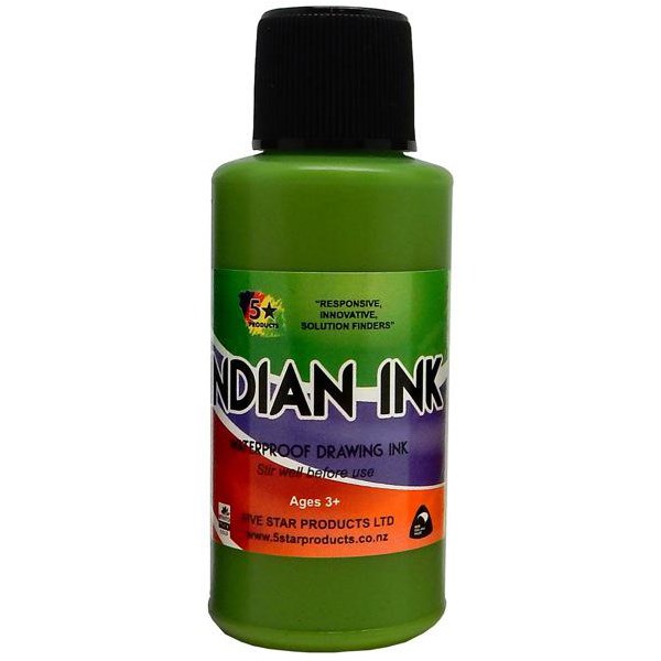 Choose this Five Star Indian Drawing Ink for great results. This professional drawing ink comes in a vibrant green colour that is waterproof once dry. It is great for drawing, painting, crayon resist work or for tonal and water colour effects when diluted. Suitable for use with a brush, calligraphic pen, airbrush, toothpick, reed pen, quill or cotton bud. Waterbased and non-toxic, this indian drawing ink is great for use by artists and in the classroom.