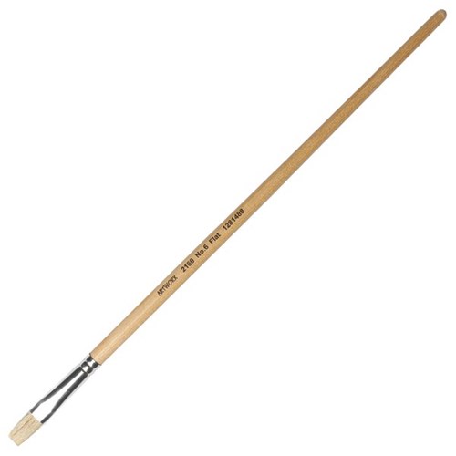 Artworx 2160 Series Flat Paint Brushes are multipurpose brushes ideal for covering large areas. These brushes have hog hair bristles and long handles featuring lacquered natural wood. Great for use with a variety of mediums including tempera paint, oil paint, acrylic paint, gouache and mixed media.