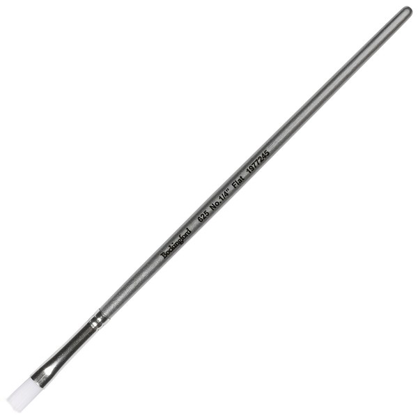 •A flat paint brush with taklon bristles and a metallic silver handle