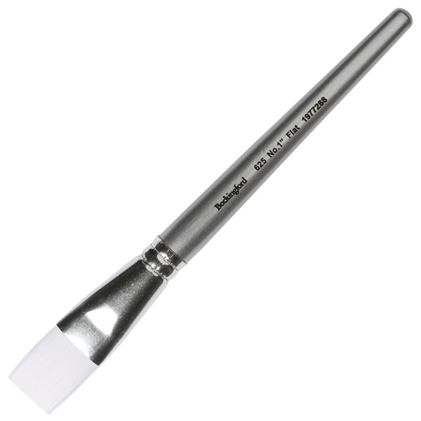 Bockingford 625 Series White Taklon Flat Paint Brushes are multipurpose paint brushes that are ideal for a variety of painting and art projects. These brushes have white taklon bristles and short metallic silver handles. This flat brush is great for quickly laying down colour. Ideal for use with oil paint, acrylic paint, gouache and mixed media.