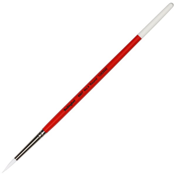 Get creative with the Bockingford 6907 premium round paint brush. It is designed for multipurpose use ideal for classrooms. The round brushes have premium white taklon bristles and short handles lacquered in red with white tips. The 6907 premium round paint brush is a No. 4 brush that measures 4mm. Suitable for use with watercolour paint, acrylic paint, oil paint, ink, gouache and mixed media. Great for highlighting, detail and stippling effects.