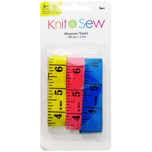 Knit & Sew Tape Measure 1.5m, Pack of 3
