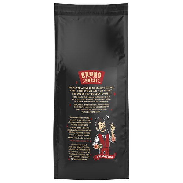 Bruno Rossi Primavera Coffee Beans deliver a delicious, aromatic cup of coffee. The coffee beans are slow roasted and have a nutty, caramel flavour with delicate notes of berry and floral. The result is a smooth, well balanced medium to dark roast blend that will be a treat for your taste buds. Tailored to New Zealand coffee tastes the quality blend combines well with milk for an exquisite flat white. Excellent for cafes, restaurants, hospitality and events, reception areas and the office.