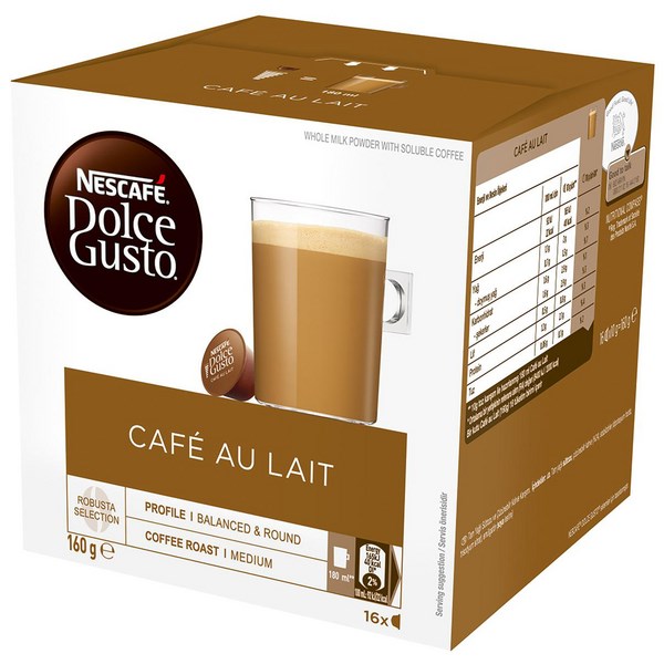 NESCAFÉ Dolce Gusto Café Au Lait Coffee Capsules offer the richness and flavour of coffee with the sweetness of milk, all in a single capsule. Enjoy Café Au Lait in a large mug for a great start to the day.