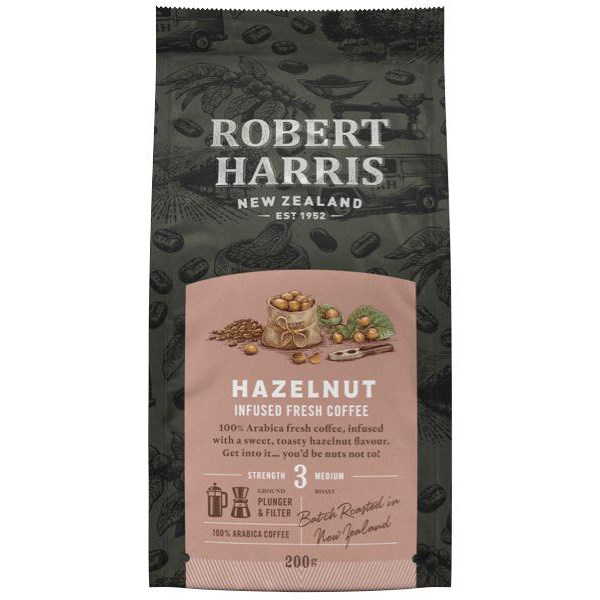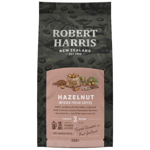 The Robert Harris hazelnut dream coffee is a full-flavoured Brazilian coffee infused with dreamy hazelnut for extra richness. Roasted in New Zealand and suitable for plunger and filter brew methods.