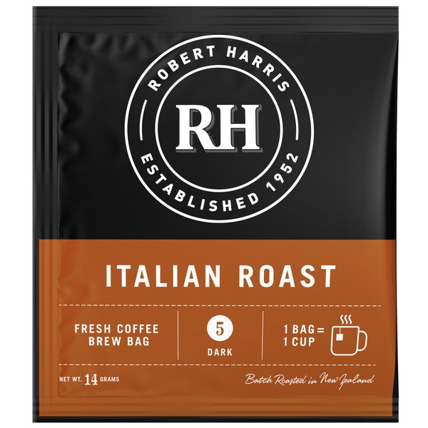This Robert Harris Italian Roast plunger coffee is the darkest roast from the range. The full-strength coffee is one of the more popular choices for decades. It comes in a box of 50 sachets with 14g of plunger coffee in each, this allows you to make fresh coffee mess free. A 14g sachet can make a single cup of coffee or use 2 sachets in a plunger.