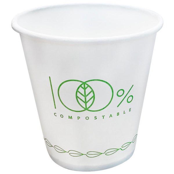 These Compostable Paper Cups are ideal for holding, carrying and serving hot liquids such as coffee, tea, hot chocolate and soup. The paper cups have a polylactic acid compostable plastic PLA lining and can composted in commercial compost facilities. The cups are printed with a water based ink. Excellent for use in catering and events, meeting rooms, reception areas, staff rooms and more.