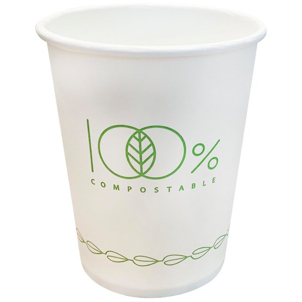 These Compostable Paper Cups are perfect for carrying and serving hot and cold beverages. They have a polylactic acid compostable plastic PLA lining and can be composted in commercial composting facilities. The cups are printed with a water based ink. Great for use in catering and events, reception areas, meeting rooms, staff rooms and more.