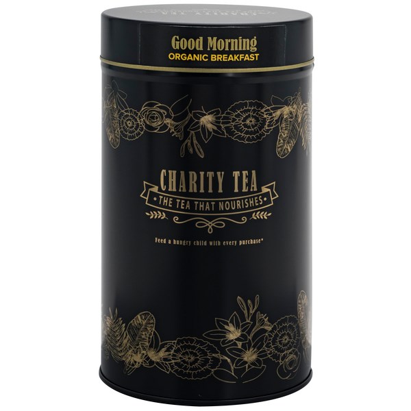 This Charity Tea Empty Refill Tin has been designed so you can easily store your favourite Good Morning Breakfast Tea Bags. It has a decorative black and gold design that will look impressive on your home or office kitchen counter.