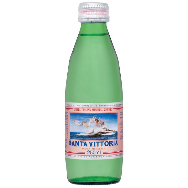 Enjoy a refreshing bottle of Santa Vittoria still mineral water. Santa Vittoria still mineral water is bottled at the source of Northern Italy, great tasting water that is perfect for meetings and functions. The carton has 24 bottles of Santa Vittoria sparkling mineral water in 250ml bottles.