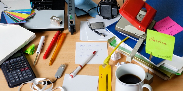 • Desks: Remove all papers – review if it needs to be recycled or stacked/filed for usage. To file paper, try using a paper tray to group the sheets together using paper clips or staples.