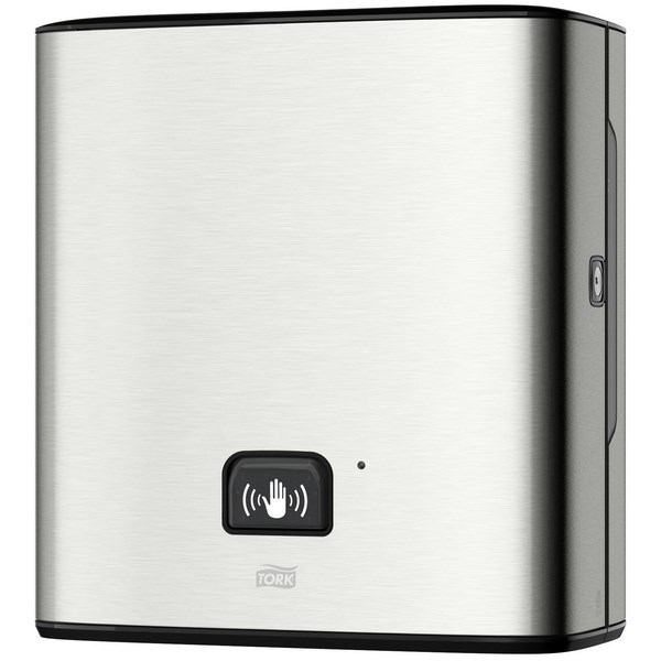 The Tork H1 460001 Sensor Hand Towel Dispenser has a modern design with smooth surfaces and clean lines to complement any contemporary bathroom environment. It has a stylish stainless steel body with an anti finger print coating so that your dispenser always looks great and stays clean. The dispenser automatically cut the towel roll one sheet at a time for reduced consumption.