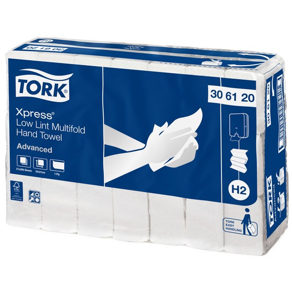 The Tork H2 Xpress Multifold Paper Towels are the most popular hand towel in the range due to their consistent high quality and value. These hand towels are specifically designed to be low lint so there is no dust or paper residue under your dispenser.