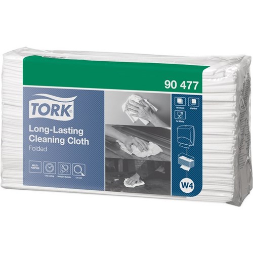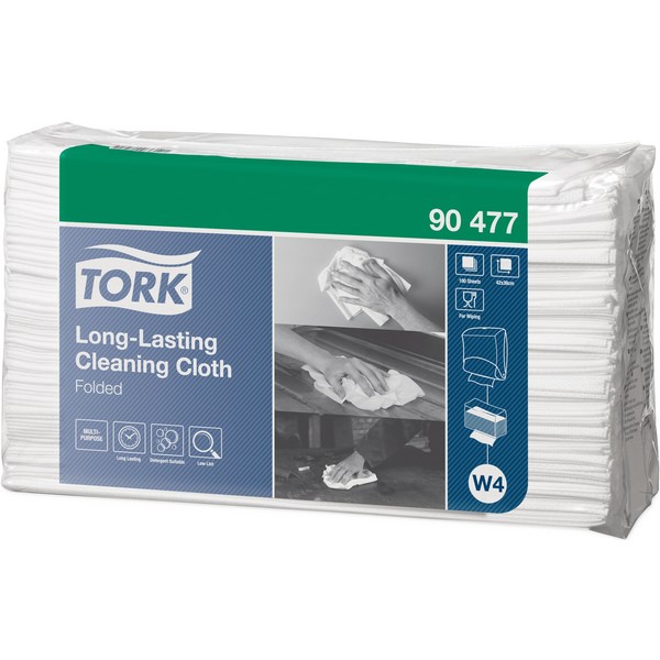 The Tork Long-Lasting Cleaning Cloth is highly absorbent and very durable, which makes it perfect for repeated use without tearing. This cloth can be used in the Tork W4 Folded Wiper/Cloth Dispenser.