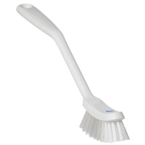 The Vikan Dish Brush is designed for effective cleaning of dishes and hard to reach areas on equipment. The narrow and small head allows it to access tight spaces easily, while the raised angle of the grip enhances the cleaning process, making it quick and effective.