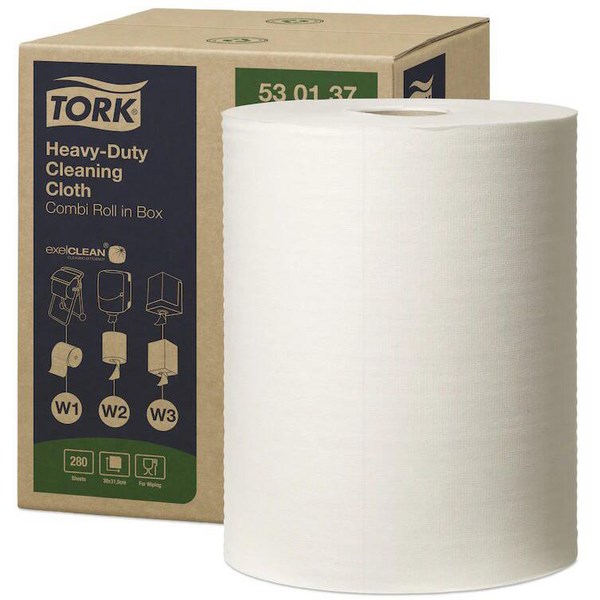 Tork Heavy Duty Cleaning Cloths are an economical alternative to rags. These cloths are multipurpose, long lasting as they resist solvents. The 530 cloths resist strong solvents and are ideal for scrubbing. Fits the Tork Dispensers W1, W2 and W3.