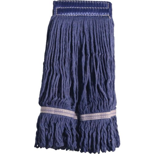 The Kentucky mop head weighs 350gm and features anti-tangle material, perfect for commercial cleaning grade cleaning jobs. It's material allows for efficient sweeping action to remove debris from most hard floors. This blue mop head is suitable for use in offices, kitchens and bars and can be used with standard wringer buckets.