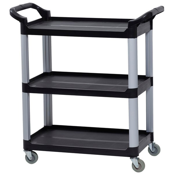 • Stylish black and silver trolley that will complement any environment