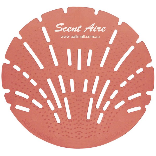Scent Aire Signature Micro Urinal Screen Mango has a fragrance that releases over 30 days. It features a two-sided anti-splash texture, preventing splash back and cross contamination of urine to other areas outside the restroom. These screens are flexible to allow proper fit to any urinal contour. The translucent design allows total viewing of the drain to ensure it remains free flowing.