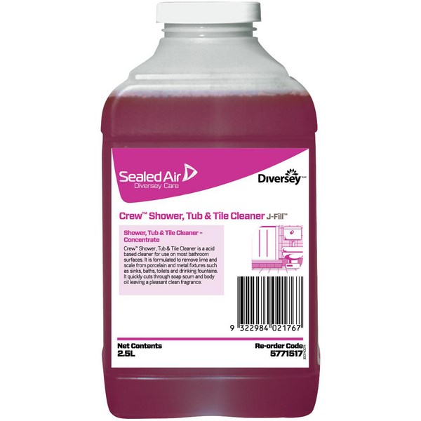 Diversey Crew Shower cleaner is a urea hydrochloride-based cleaner for use on most bathroom surfaces. It is ideal for removing lime and scale from porcelain and metal fixtures. It quickly cuts through soap scum and body oil leaving a pleasant clean fragrance.