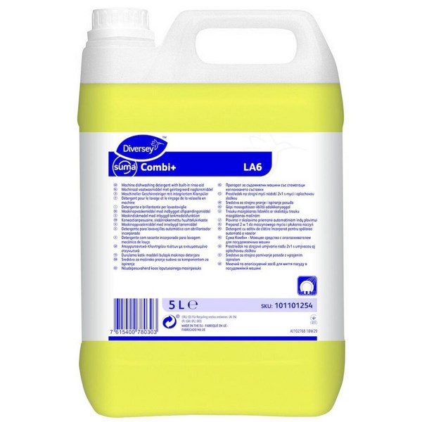 Use this Diversey Suma Combi+ LA6 Dish Wash Concentrate for an excellent concentrated liquid mechanical ware washing detergent. Contains rinse-aid for a combined washing solution.