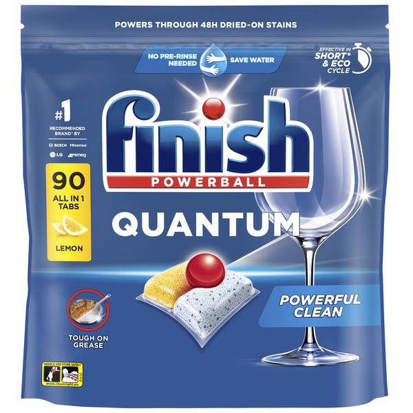 The Finish Quantum Essential Dishwashing Tablets provides powerful clean that works both in short (1hr, 65°C) and eco cycles. It efficiently dissolves various food residues and grease including tough stains that have dried for up to 48 hours, without the need of pre rinsing.