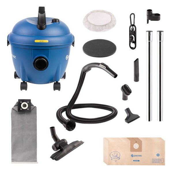 This Pacvac Glide 300 Vacuum Cleaner is a state-of-the-art canister vacuum that has commercially strong suction power. It is light in weight and tailor-made to move smoothly and quickly for effortless cleaning. It is ideal for use in any area, including homes, hotels, trade or retail.