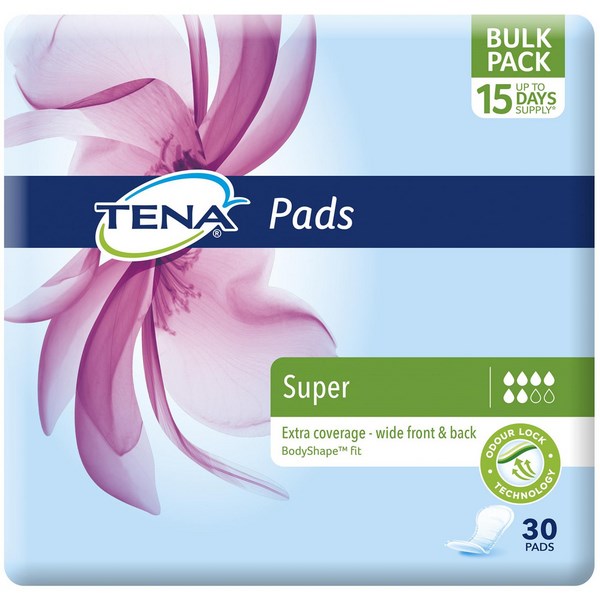 These TENA Super Continence Pads have an extra wide front and back for extra coverage, absorbency and protection. Suitable to manage moderate to heavy continece, these pads contour to the shape of the body for greater security and comfort. Made from a breathable fabric that is kind to skin, these pads have built in Odour Control to help you feel dry, clean and fresh.