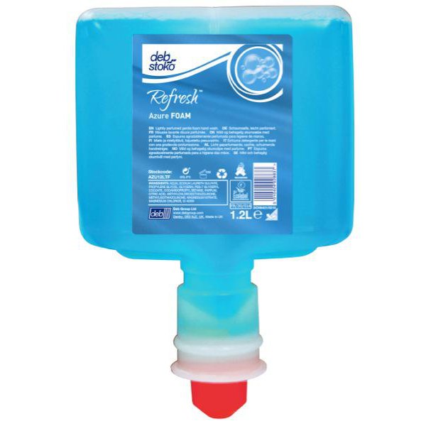 Deb Stoko Refresh Azure is a gentle foaming hand wash with a light, pleasant fragrance that is ideal for hand cleansing in office, education, nursery, healthcare and aged care washrooms, as well as other public facilities. Containing Glycerin, it moisturises hands and leaves skin feeling fresh and clean. This foam hand wash provides a pleasant hand wash experience and comes in a 1200ml cartridge that is suitable for use in the TouchFree Dispenser.