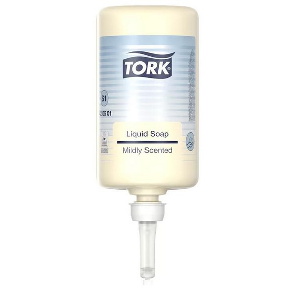 The Tork S1 Mildly Scented Liquid Soap is a mild, creamy soap that is ideal for regular hand washing. It is dermatologically tested and provides a rich, creamy lather that leaves hands feeling soft and clean. This hand soap is suitable for use with the Tork S1 dispensers and is ideal for use in the bathrooms at the office, hospitals, education and care facilities.