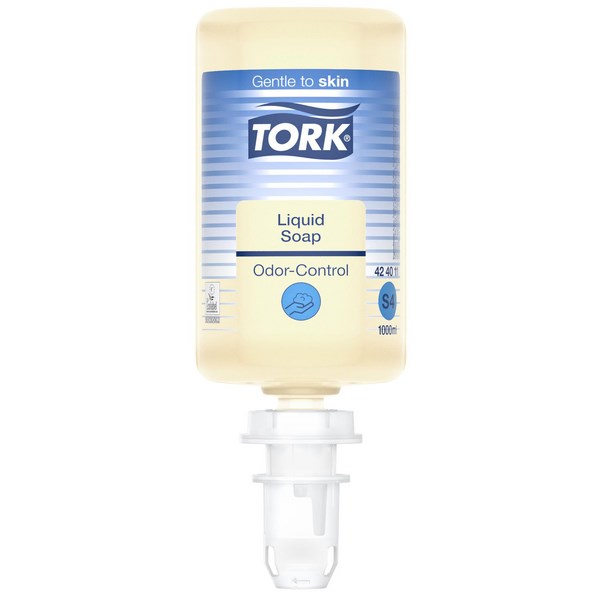 This Tork S4 Odour Control Liquid Soap is a great item for use in bathrooms and kitchens. The soap has no added colours or perfumes and is kind on skin. It is formulated to remove grease and odours from your hands. Suitable for use in Tork Skincare Dispensers (sold separately).