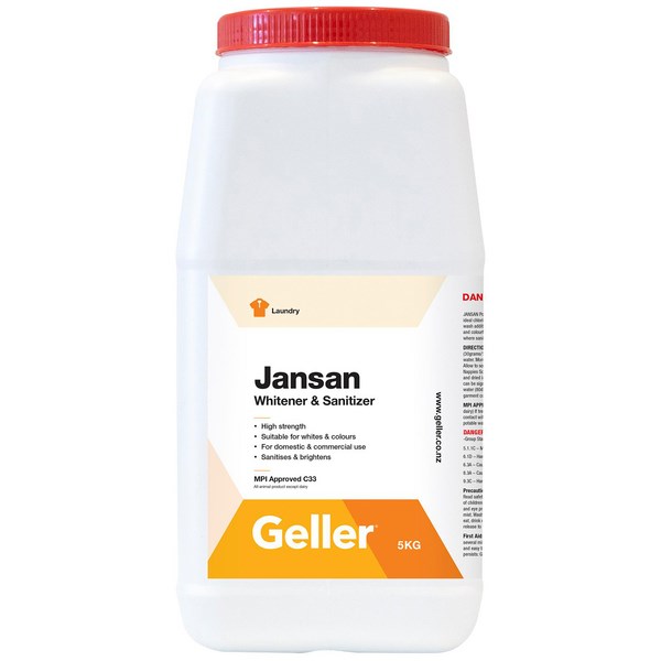 This Geller Jansan Coloursoak Laundry Cleaner is a powerful chlorinated whitener-sanitiser. Excellent for use as a pre-wash or for soaking. Can be used as an additive to a machine wash to remove mildew and stains in whites and colourfast pastels. The low foaming, concentrated formulation is effective in hot water and is great for use in facilities where sanitising is important.