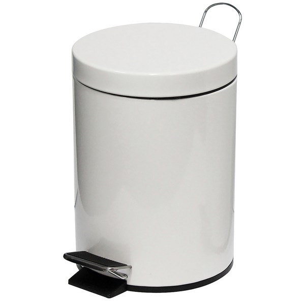 •Contemporary 5 litre rubbish bin in powder coated gloss White finish