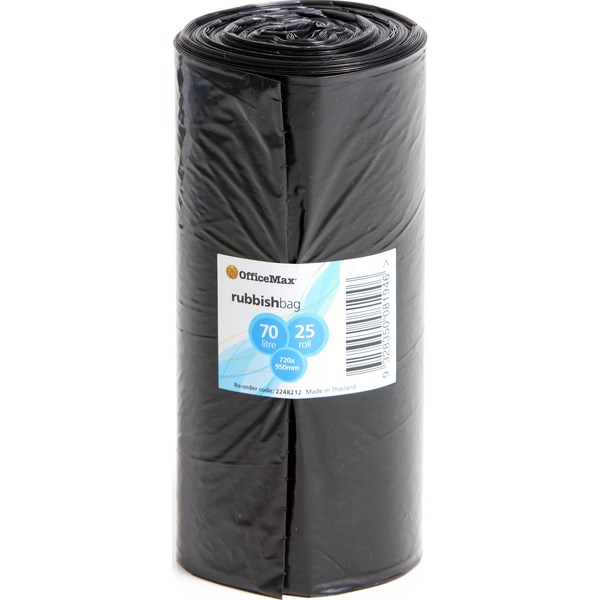 These OfficeMax Plastic Rubbish Bags are made from HDPE and are great for keeping special occasions, such as birthday parties clean and tidy. These bin liners have a 70 litre capacity and are 30 micron to help prevent tears and rips. They come on a roll of 25 with each bag measuring 720x950mm.