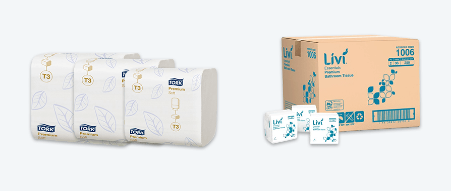 Kit out bathrooms and stock up your cleaning cupboards with our selection of toilet paper and tissues. From jumbo rolls to standard and interleaved tissue, you can choose from costsaver, eco-conscious or premium options. Shop tissue and toilet roll dispensers as well as facial tissues too.