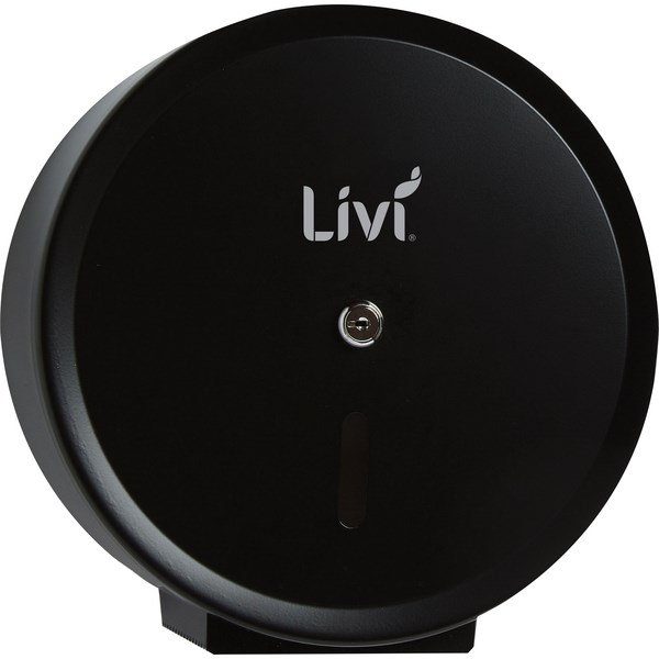 This Livi Toilet Tissue Jumbo Dispenser is a stylish black dispenser is ideal for locations that require extra security. This lockable unit has it's own bespoke key to secure the contents. It is compatible with Livi Jumbo toilet rolls.