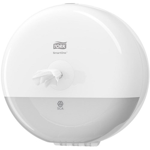 The Tork Smartone Single Mini Toilet Tissue Dispenser is a very efficient and robust modern dispensing system, suitable for low to medium traffic washrooms. The sheet by sheet dispensing design means reduced waste and less sheets used than a traditional dispenser with a jumbo roll.