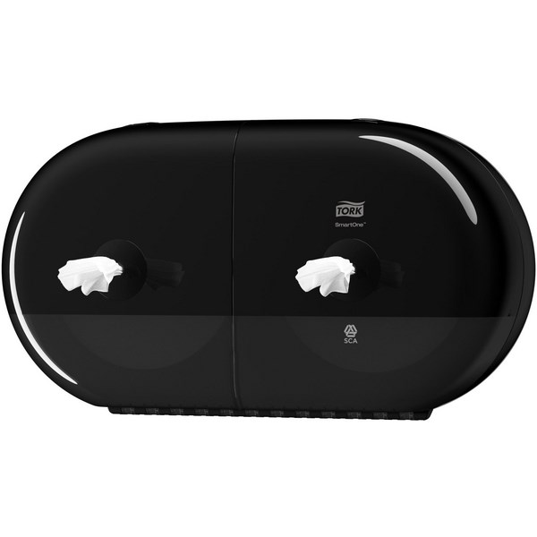 The Tork Smartone Twin Mini Toilet Tissue Dispenser is a very efficient and robust modern dispensing system, suitable for high traffic, high demand washrooms. The two roll capability and sheet by sheet dispensing design means reduced waste and less sheets used than a traditional dispenser with a jumbo roll.