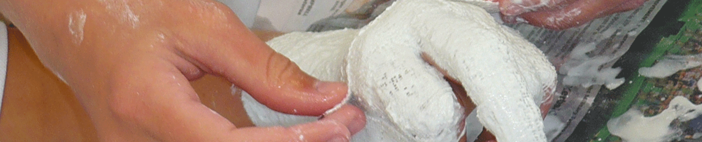 Dip bandage in water and place the wet bandage on the body part or mould. Smooth the edges of the bandage, so it lies flat to the body, making sure to smooth out all air bubbles that may be trapped under the bandage.