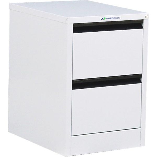 Precision Filing Cabinets have an all-steel construction and a scratch resistant powder coated finish. It has a rivetless exterior giving it a sleek look and preventing damage to adjoining furniture. The drawers have full-height sides, ensuring the contents is protected and allowing for storage of items other than suspension files. Full extension ball bearing runners allow you to easily access items stored at the back. Each drawer has a drawer retention mechanism which prevents the drawer from bouncing back on shutting. The anti-tilt safety feature prevents a second drawer from being opened before the first is closed.