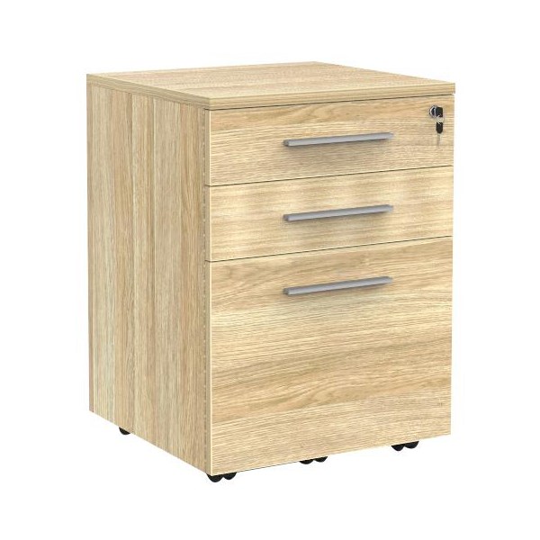 The Cubit 3 Drawer Mobile provides excellent storage in the office and at home. The stylish mobile is finished in durable Atlantic Oak melamine for a contemporary addition to a modern office. The ganglock locks all three drawers for safe and secure storage. Ideal for creating extra space for documents, resources and office supplies.
