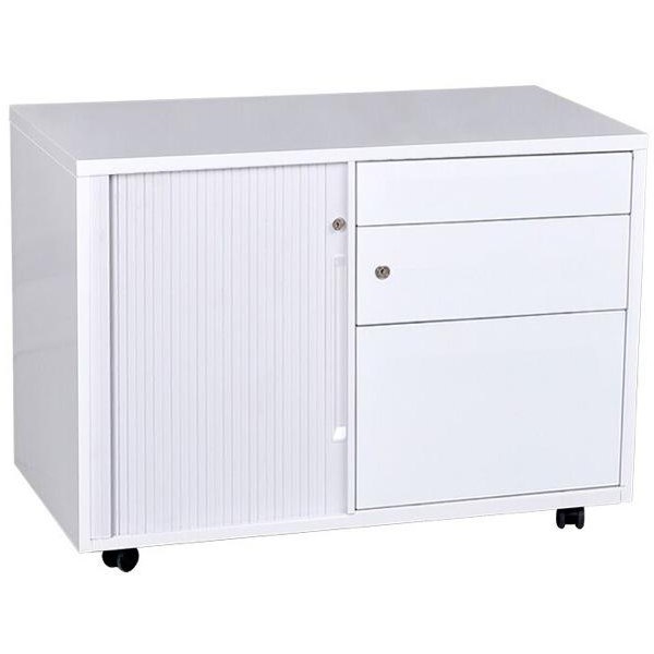 Keep your office space neat and organised with this Mobile Caddy, which is a handy addition to any office. It features two personal drawers, one foolscap file drawer and a tambour door on the left that slides open. With central locking, it allows you to safely store private and confidential documents and comes with a handy folding key.