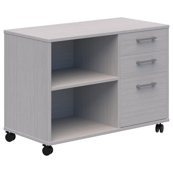 • Lockable mobile caddy with drawers and open shelving with right-hand orientation