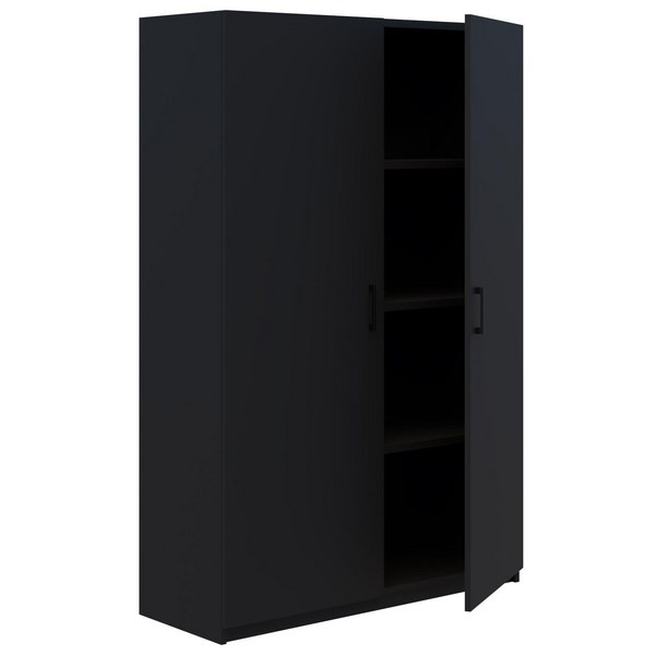 This Fiord Cabinet is ideal for storing a variety of items and can be used in the home or the office. It has three adjustable shelves for customisable storage and the cupboard doors have matt black handles.