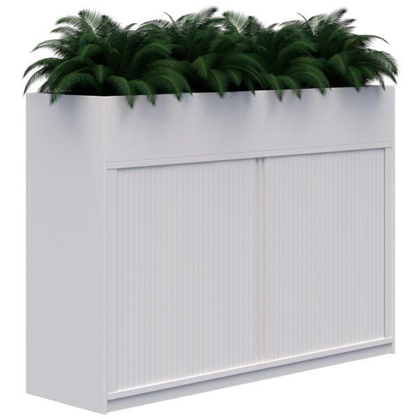 This Mascot Tambour Storage Unit has tambour-style doors that roll open, requiring no additional floor space for opening. It is ideal for storing all your files, documents, stationery and personal iTem. It has 2 adjustable shelves providing plenty of storage space and flexibility in space management. The tambour is constructed from laminated board and doors are white and constructed from durable polymer. The matching planter on top of the unit is ideal for adding live plants, to bring some greenery into offices.