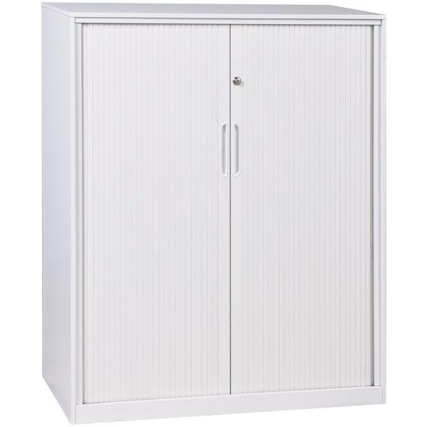 This Proceed 4 Tier Tambour is the perfect office storage solution. It is great for storing files, stationery and general office items. This storage cupboard has a sturdy steel construction with a white powder coated finish and white PVC doors. It features 3 adjustable shelves, giving you ample storage space that is flexible depending on the items you intend to store. The doors feature a lock to keep all your important items secure.